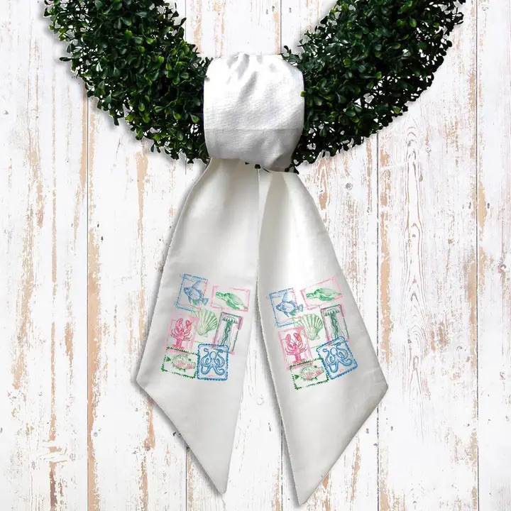 Wreath sash featuring a coastal beach stamp design