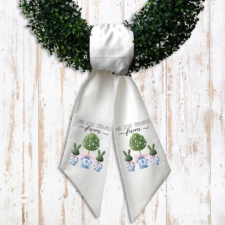 Fabric sash for seasonal wreath styling